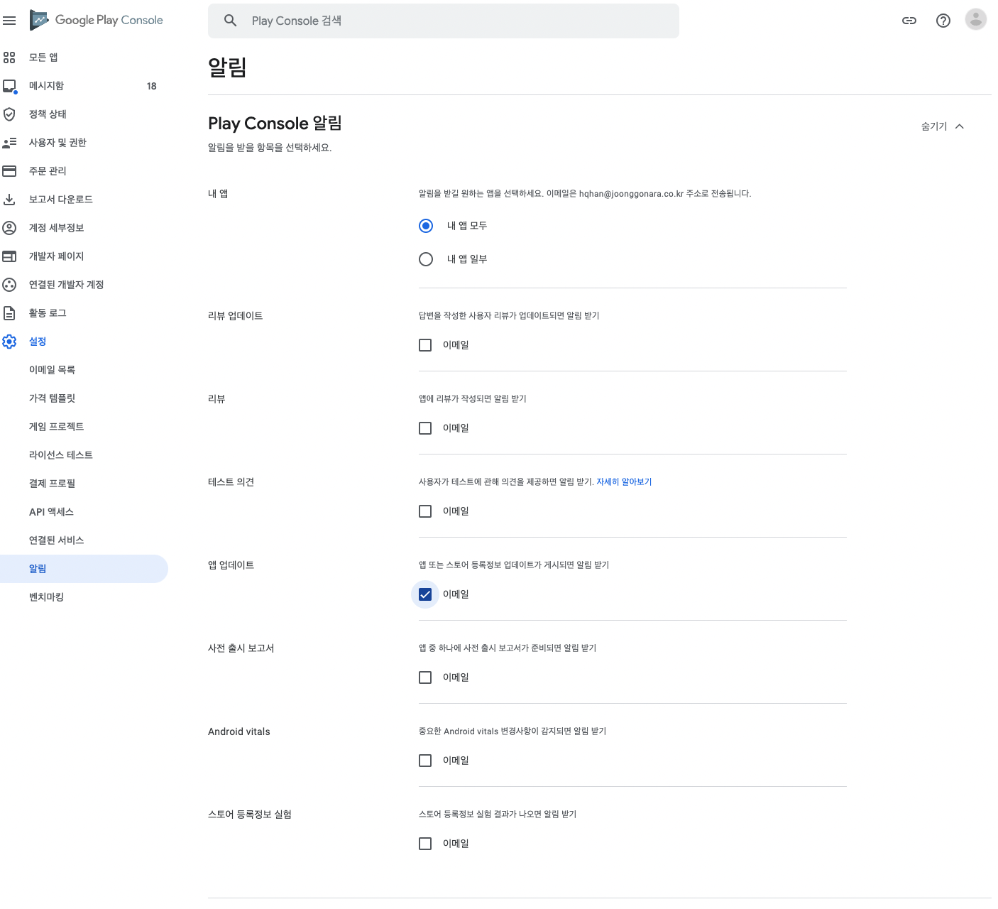 iOS 는 앱 출시하거나 테스트 플라이트에 올리면 디폴트로 이메일이 전송되는데